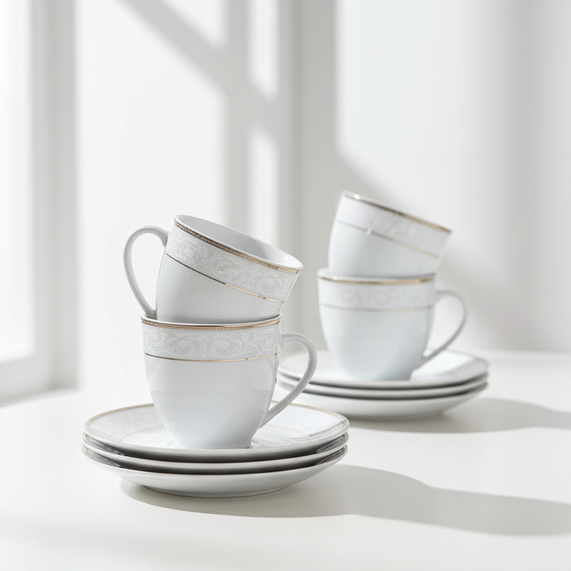 Перфектен за Всеки Повод: Независимо дали става въпрос за сутрешно кафе, следобеден чай или специално събитие, този комплект е идеален за всяка ситуация. Със своите 6 чаши и 6 чинийки, той е достатъчен за да сервирате на семейството и приятелите си стилно и елегантно.