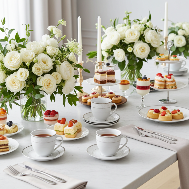 - Елегантен дизайн: Бял порцелан със сребърни акценти.