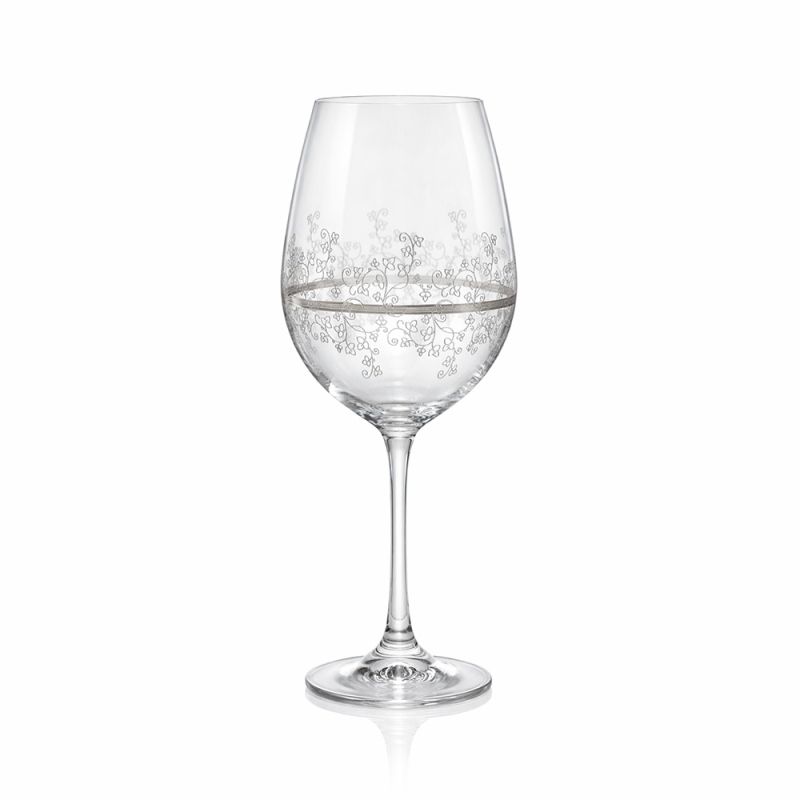 Харестеристика: Гладки стени, висок тънък крак, прозрачен цвят с нежна флорална декорация и ръчно декориран платинен кант, подаръчна опаковка.