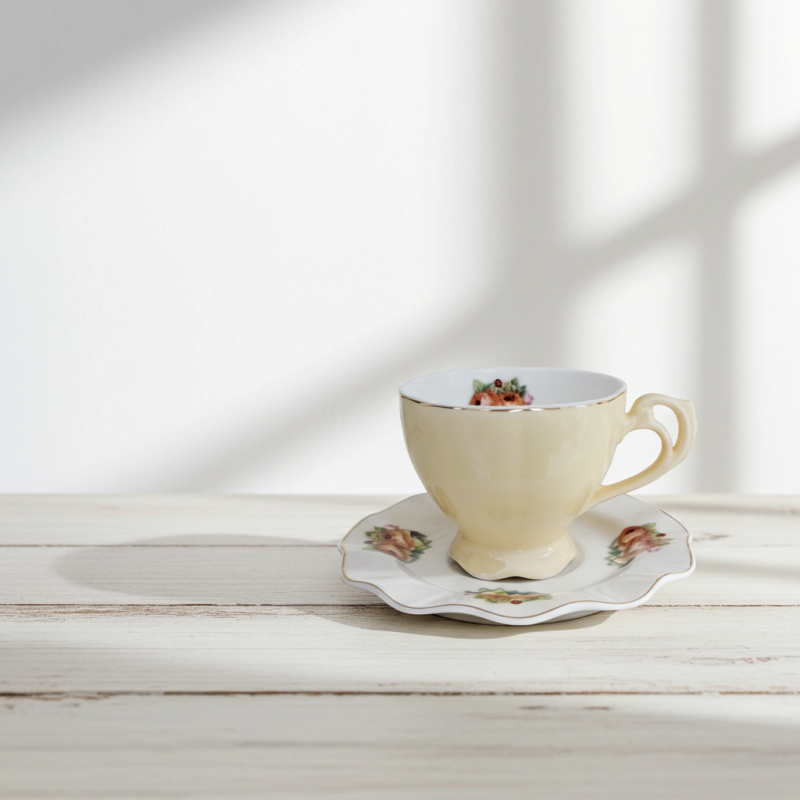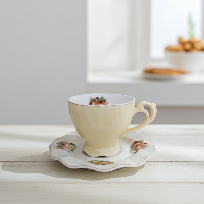 Чаши за кафе 2 бр. с чинийки Yellow Magic - порцелан
