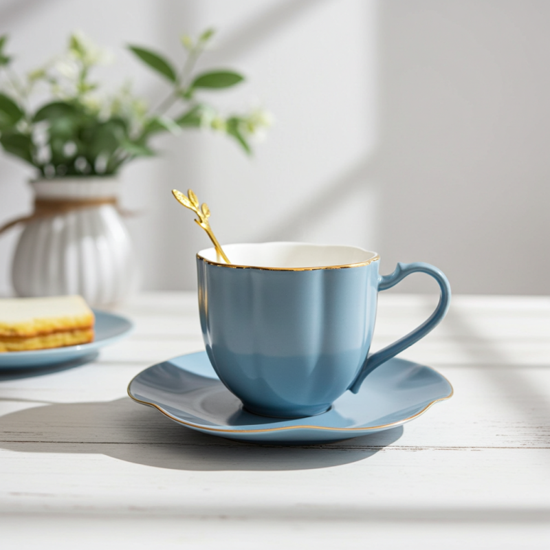 - 1 бр. чаша за капучино или чай 200 мл с вълнообразна форам и златен кант