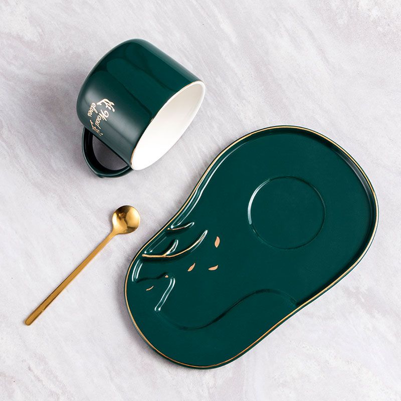 Чаша за капучино или чай, дълга чинийка за сладки и лъжичка Wood Elves Green