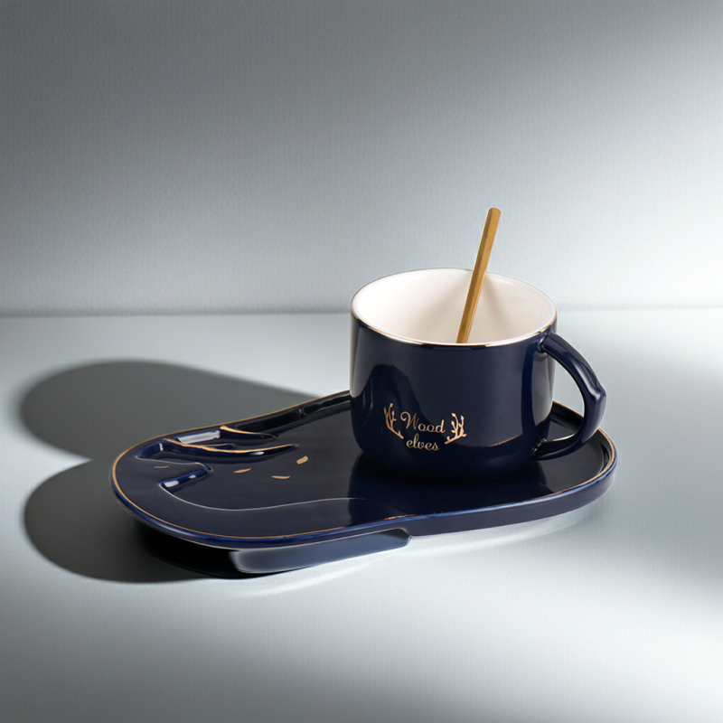 Елегантност във всяка глътка: Чаша Wood Elves Blue с чинийка и лъжичка