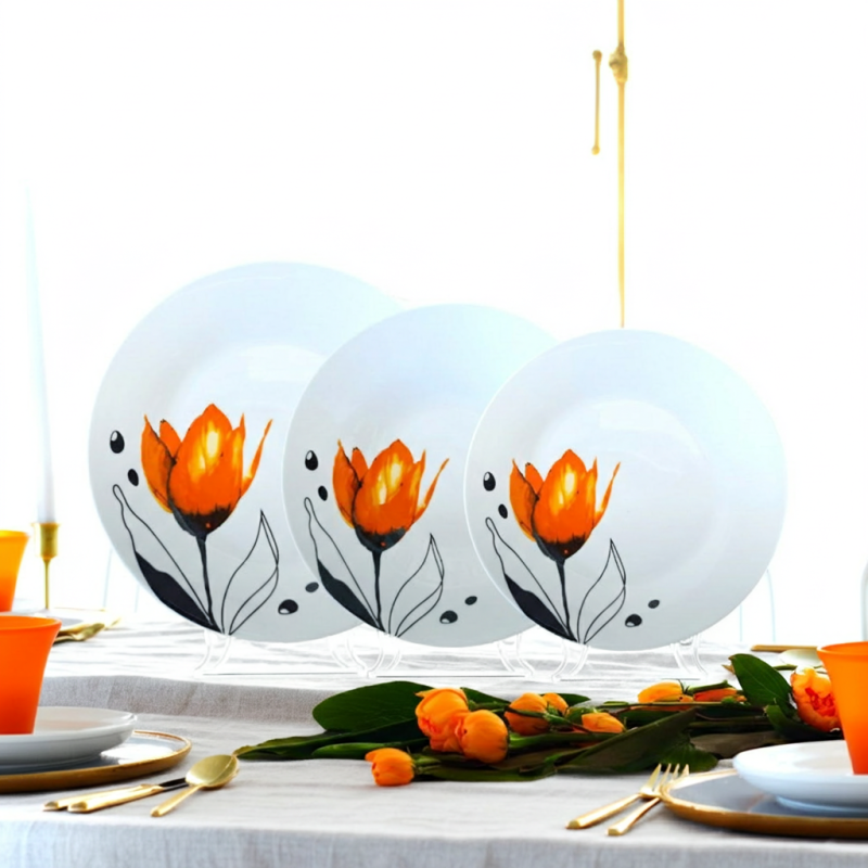 Универсалност и удобство: Независимо дали организирате семейна вечеря или събиране с приятели, сервизът ORANGE TULIP ще направи впечатление. Лекотата на поддръжката и устойчивостта му гарантират дълготрайна употреба.