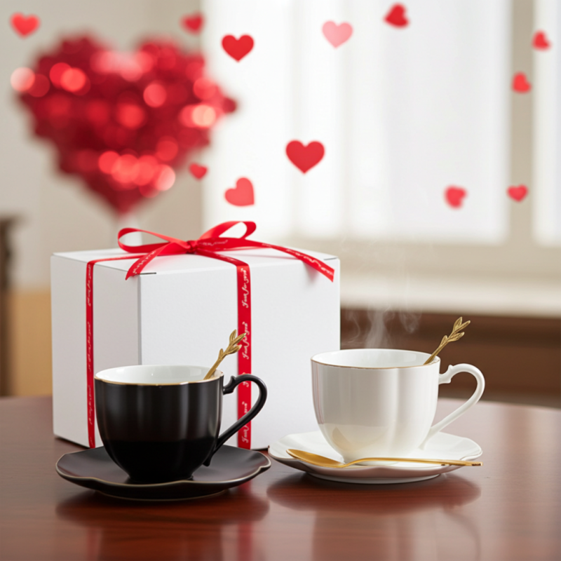 Комплект за двама: 2 чаши, 2 чинийки, 2 лъжички White & Gold в подаръчна кутия