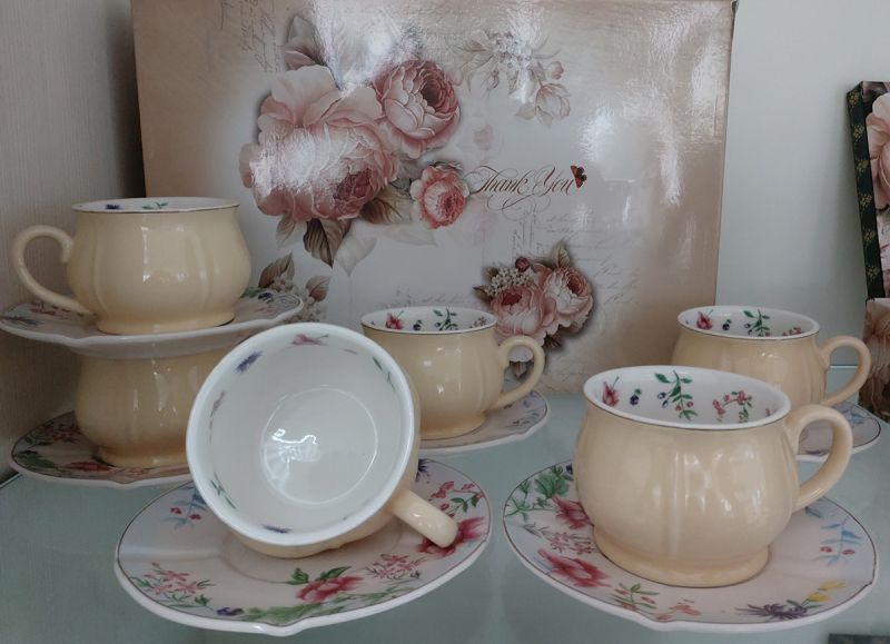 - Комплект от 6 чаши и 6 чинийки
