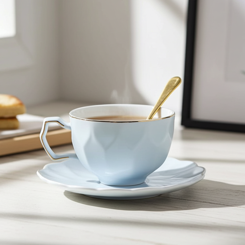 Елегантен комплект за сервиране на топли напитки от висококачествен порцелан.