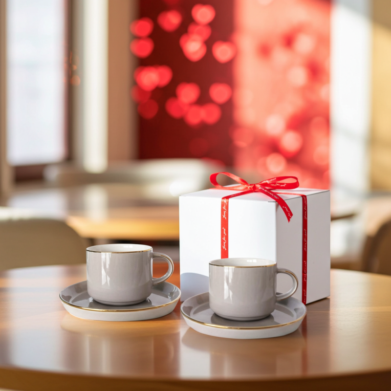 Насладете се на перфектните моменти заедно с любимия човек с нашия изискан комплект за двама Modern Gray. Този комплект включва две стилни чаши с вместимост 200 мл и две подходящи чинийки, които ще добавят нотка елегантност към всяка обстановка. Идеален за сутрешно кафе, следобеден чай или специални поводи, този комплект е проектиран да впечатли.