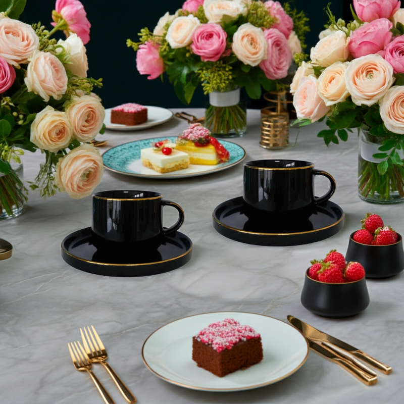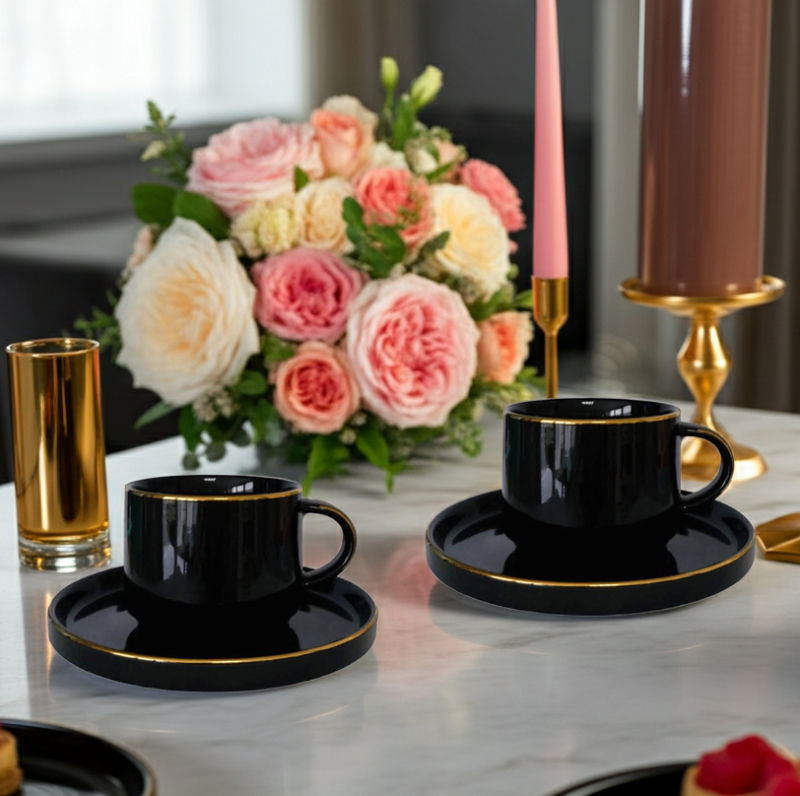 Комплект за двама: 2 чаши 200 мл с 2 чинийки Modern Black