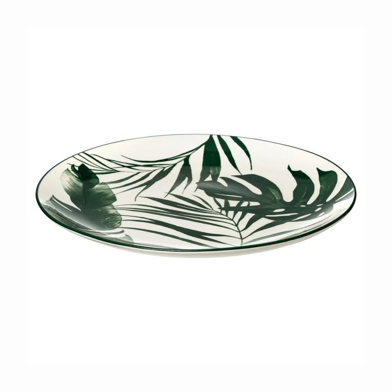 Представяме ви порцеланова чиния с декор тропически листа. Тази чиния е перфектният начин да направите всяко ястие специално. Независимо дали сте домакин на официална вечеря или просто се наслаждавате на семейна вечеря, тази чиния със сигурност ще впечатли вашите гости.