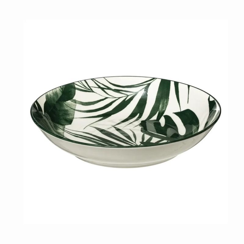 Представяме Ви многофункционална дълбока чиния с уникали тропически листа, която можете да използвате за сервиране на супи, ахнии, салати и много други ястия.