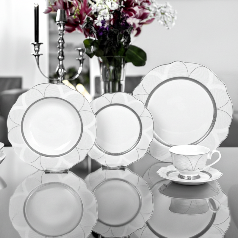 Изискан дизайн: Сервизът Royal Silver впечатлява със своя изискан дизайн, който включва деликатни сребърни акценти. Нежните орнаменти и фините линии придават на сервиза неповторим чар и елегантност.