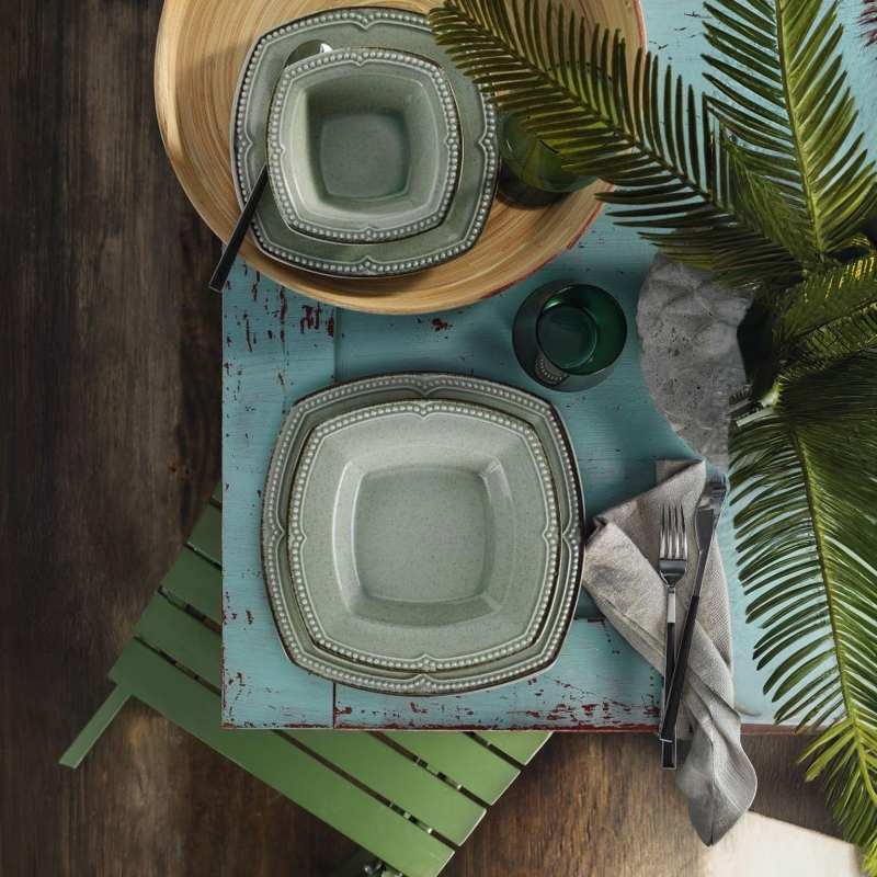 Представяме Ви една от тендециите в интериорните цветове за 2025 г. - комплект за 6 човека в топли зелени нюанси.