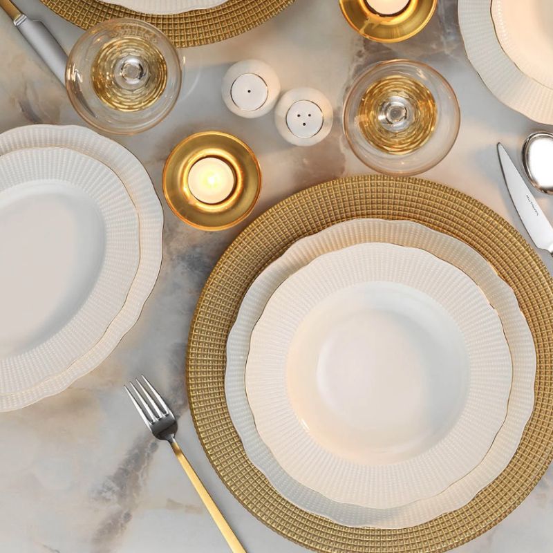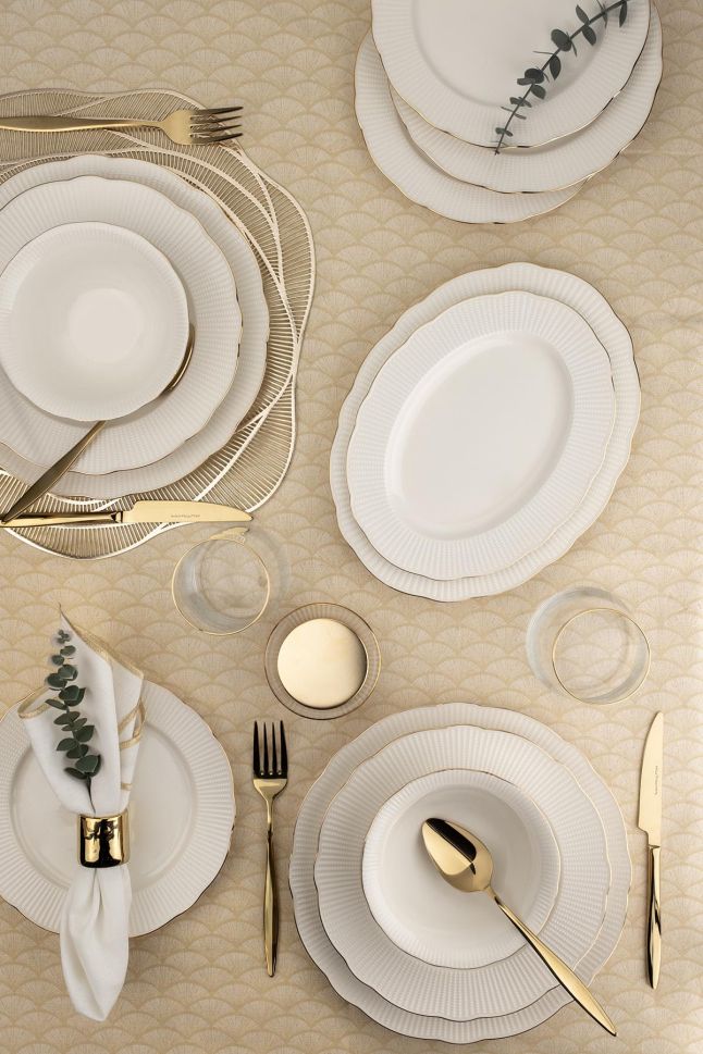Комплект за вечеря Kütahya Porcelain Bone İlay от 26 части за 6 души, златист кант