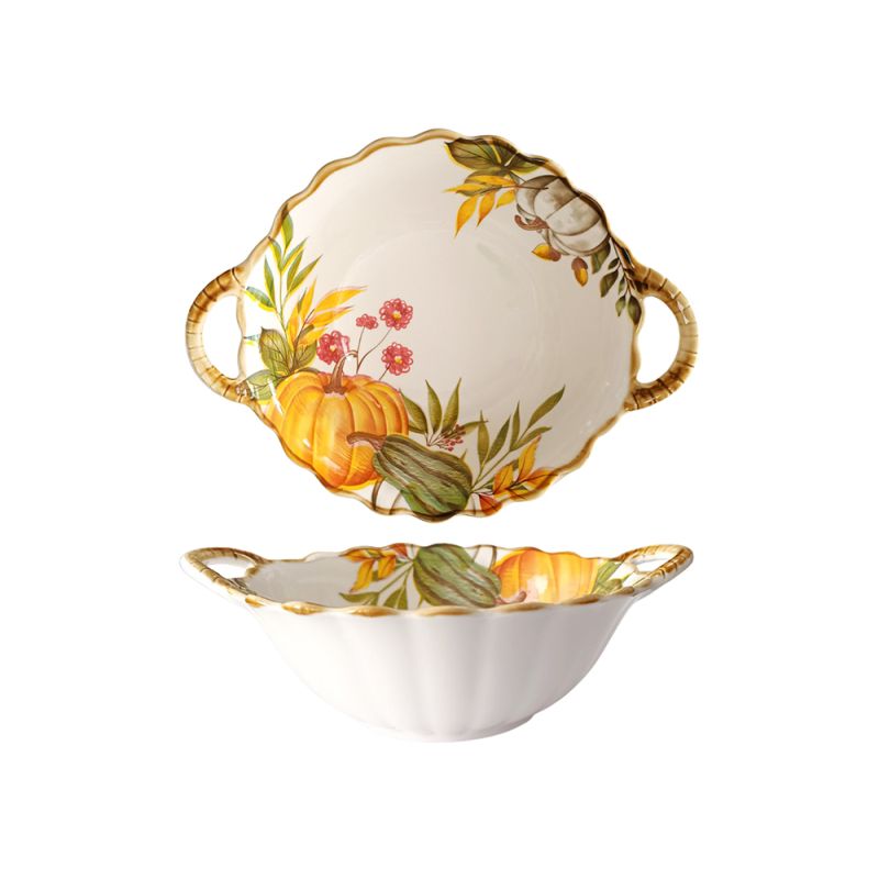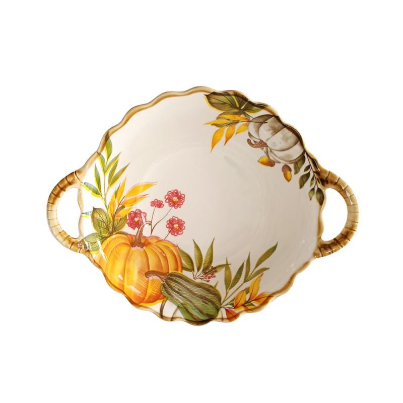 Керамична купа с дръжки за салата и плодове 24,8 см 1170 мл Natasha с декор тикви