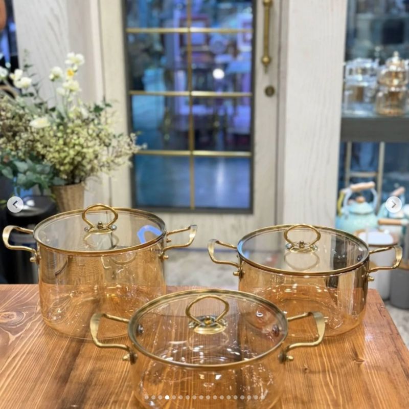 Кехлибарена стъклена тенджера 3,5 л със златни дръжки