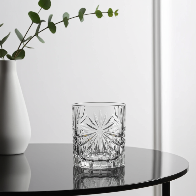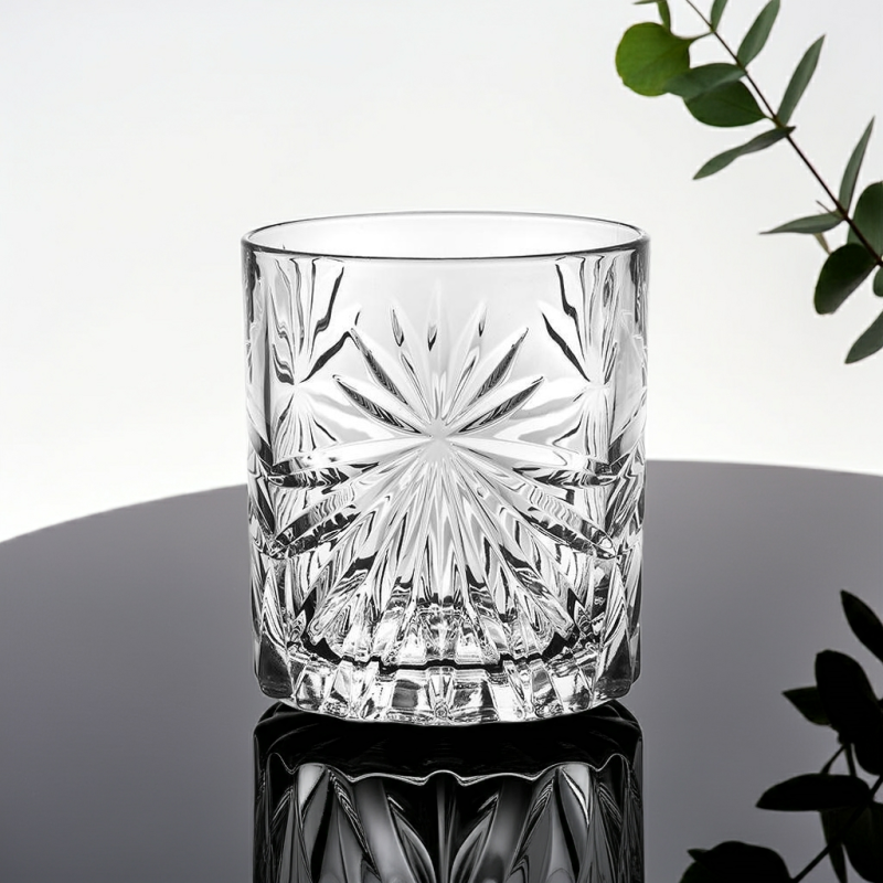 Дизайнът "Sunrise" е вдъхновен от красотата на изгряващото слънце, пресъздаден в сложни кристални шарки, които пречупват светлината и създават заслепяващ ефект. Всяка чаша е внимателно изработена, за да осигури максимално удобство при държане и пиене. Независимо дали сте ценител на уискито или просто обичате да се наслаждавате на любимата си напитка със стил, тези чаши ще надминат вашите очаквания.