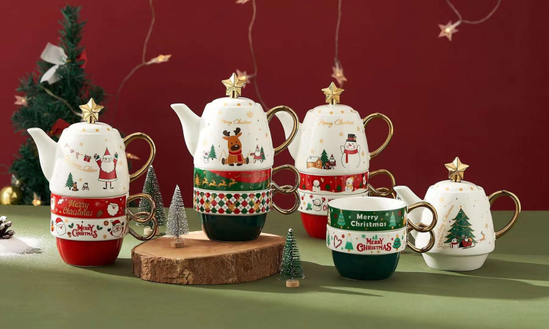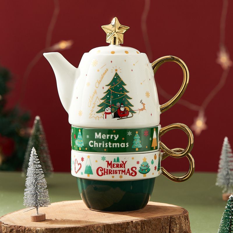 Насладете се на топлината и уюта на коледните празници с този прекрасен комплект за чай!