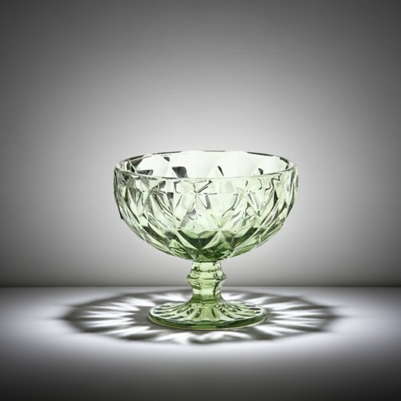 Всяка чаша е изработена с внимание към детайла, с релефно стъкло, което създава красиви отблясъци и придава уникален вид. Нежният зелен цвят на Green Valley добавя свежест и хармония към всяка обстановка.