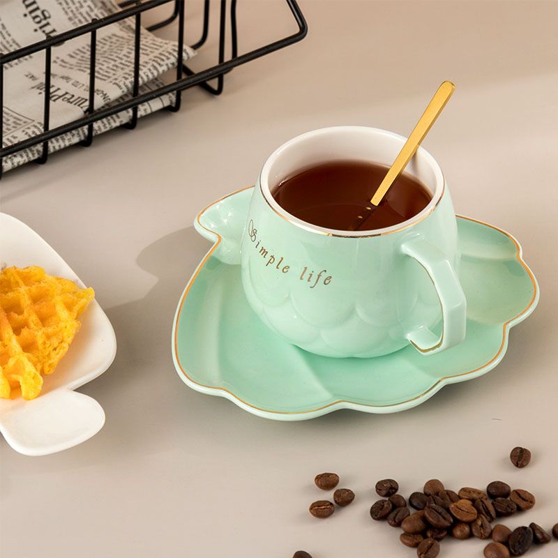 Сетът "Simple Life Green" е изработен от висококачествен порцелан, който гарантира дълготрайност и устойчивост на употреба. Нежният зелен цвят и златните акценти придават изискан вид, който ще впечатли всеки гост. Дизайнът на чашата и чинийката е вдъхновен от природата, като формите имитират морски мотиви, носейки усещане за спокойствие и хармония.