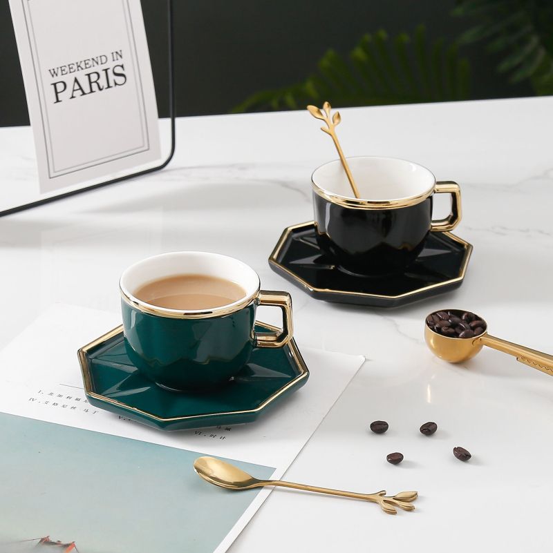 Независимо дали се наслаждавате на сутрешното си кафе, споделяте момент с приятели или търсите идеален подарък за любим човек, този комплект е подходящ за всеки повод. Чинийката осигурява стабилна основа за чашата, а златната лъжичка е перфектният аксесоар за разбъркване на любимата ви напитка.