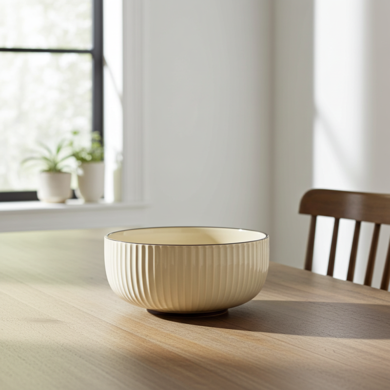 Представяме ви нашата елегантна керамична купа в скандинавски стил, налична в нежни цветове бежово и сиво. Тази купа с вместимост 1100 мл е идеална за сервиране на салати, супи, паста и други ястия.