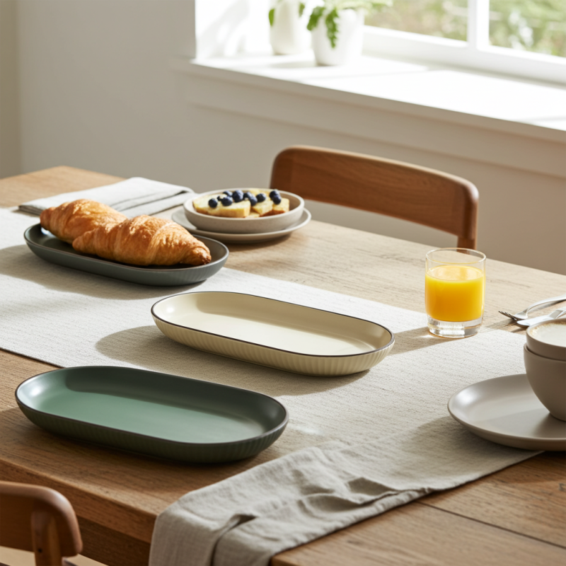 Елегантен дизайн: Овалната форма и нежните цветове - зелено, бежово и сиво - придават модерен и стилен вид на всяка трапеза.
