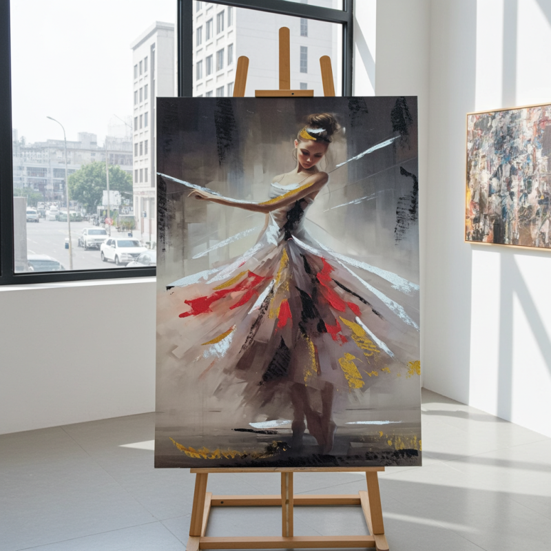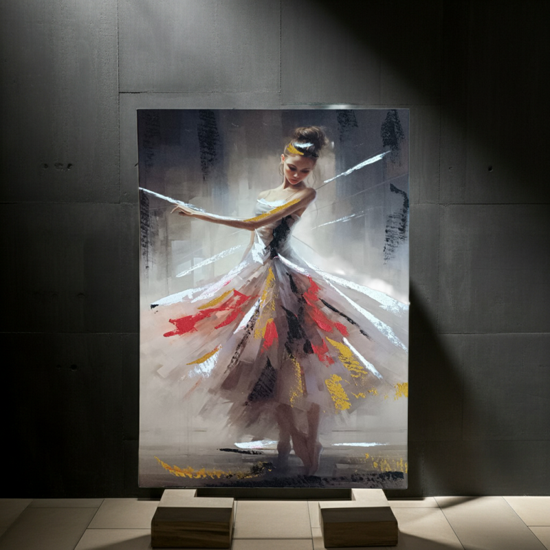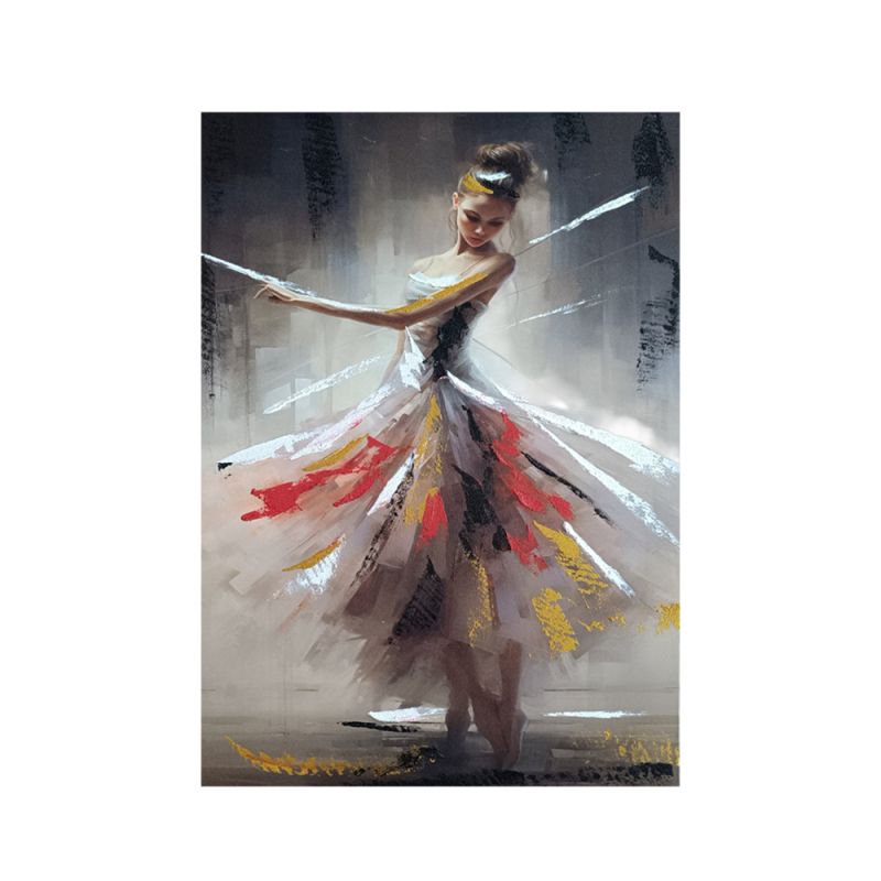 Пренесете изяществото и грацията на балета във вашия дом с нашата прекрасна картина "Елегантна танцуваща дама". Тази завладяваща творба е перфектният акцент за всяко помещение, вдъхвайки живот и движение в интериора.