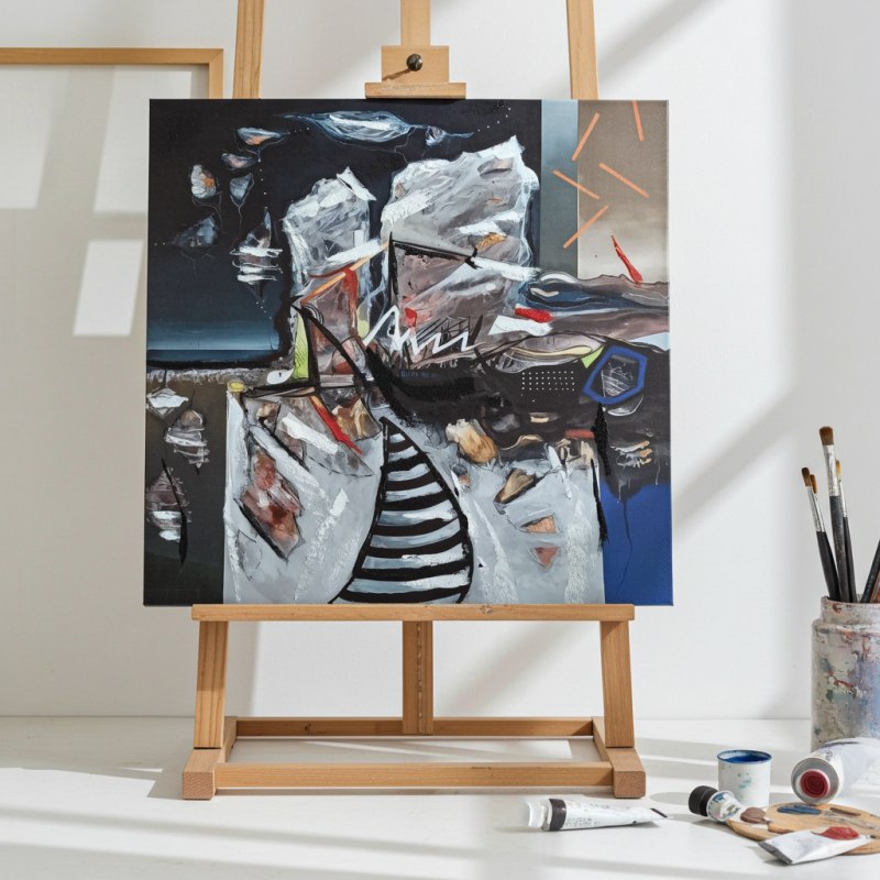 Внесете артистичен акцент във вашия дом с картината "Абстракт канава", ръчно рисувана и изпълнена с уникални елементи. Тази картина е идеалното допълнение към всяко пространство, търсещо израз на индивидуалност и съвременен стил.