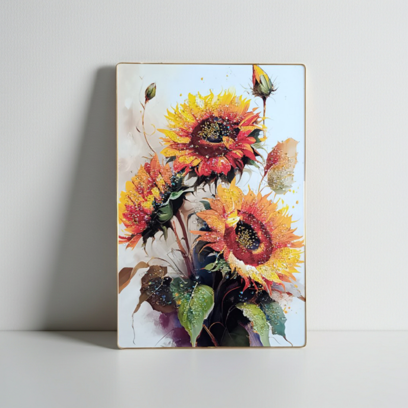 Картината е с размери 40 х 60 см, което я прави подходяща за различни пространства - от хола и спалнята до офиса. Рамката придава завършен вид и подчертава красотата на изобразените слънчогледи. Техниката на изработка Art Crystal добавя допълнителен блясък и текстура, превръщайки картината в истинско произведение на изкуството.