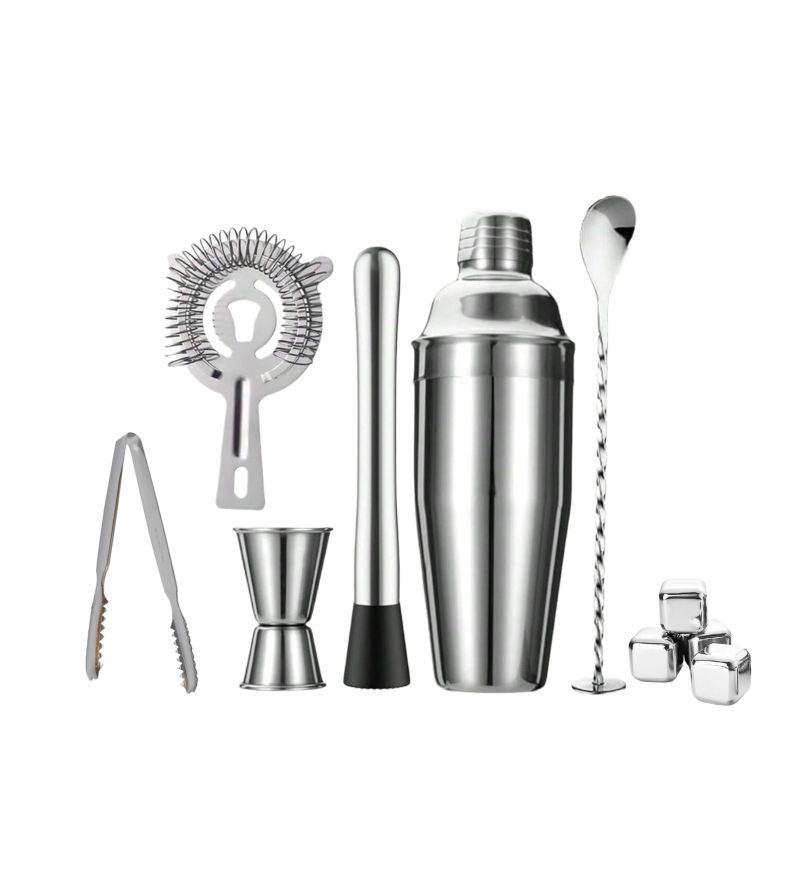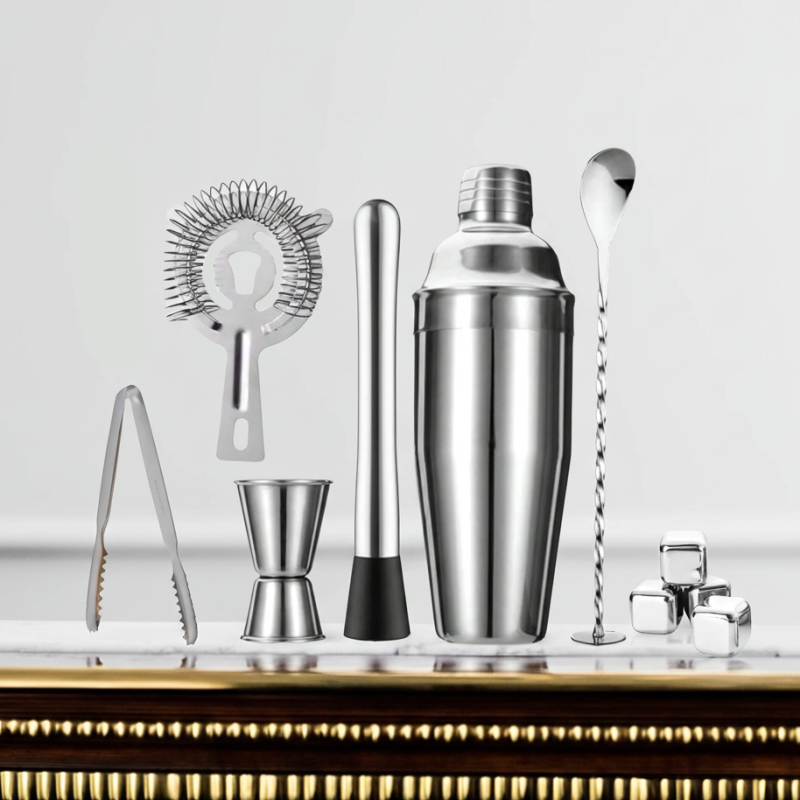 - Метален шейкър (750 мл): Здрав и елегантен, идеален за смесване на вашите любими коктейли.