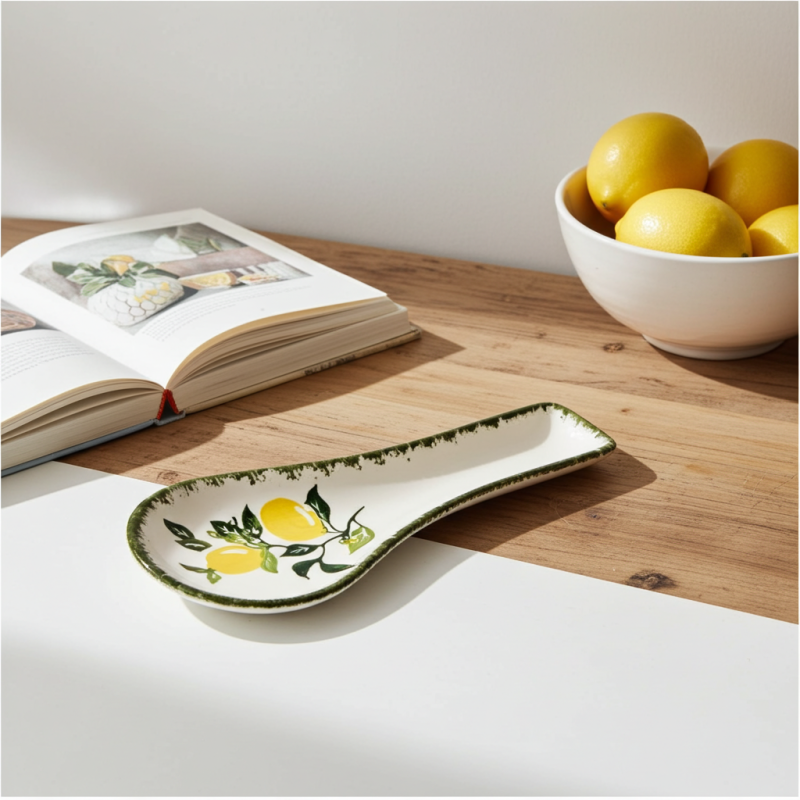 Керамичната лъжица Lemons е не само красива, но и изключително практична. Нейната форма е специално проектирана, за да задържа всякакви лъжици и черпаци, като предотвратява капенето и замърсяването на вашите кухненски плотове. Независимо дали приготвяте супи, сосове или други ястия, тази лъжица ще ви помогне да поддържате чистота и ред във вашата работна зона.