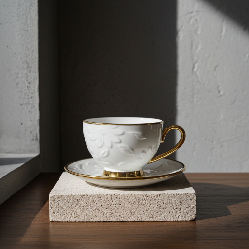 Златните акценти допълнително подчертават красотата на порцелана и правят всяка глътка кафе специална.