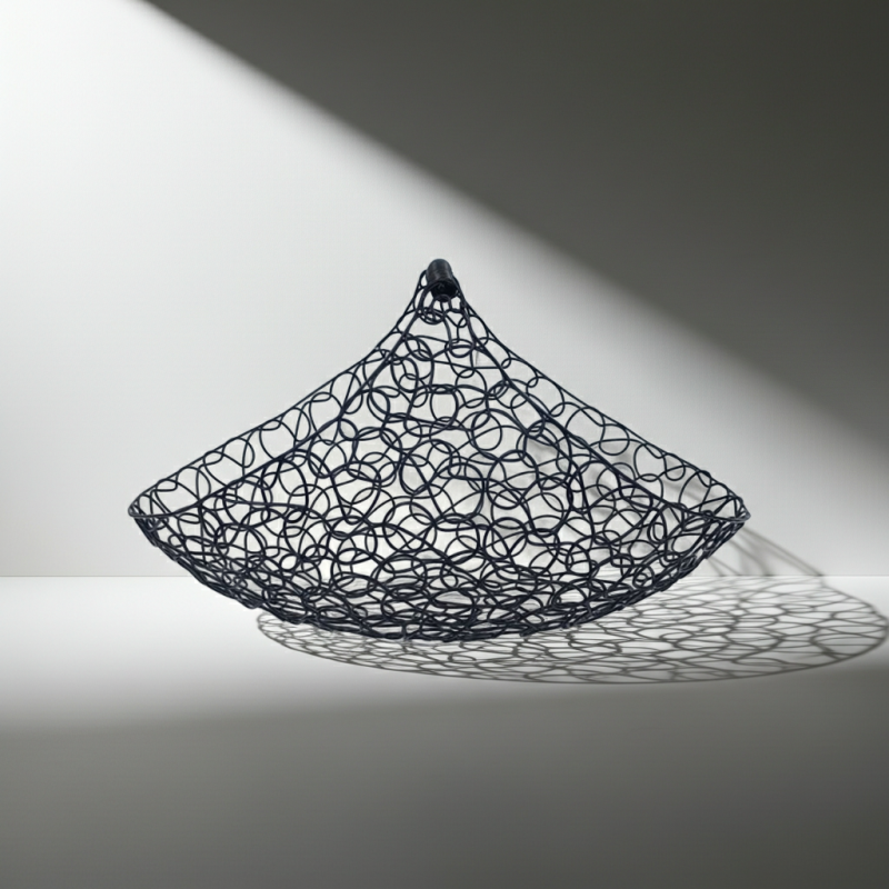 Вдъхновена от органичните форми и техниката на световноизвестния художник Ulrikk Dufossé, тази фруктиера съчетава ръчно изтъкана мрежа от тел със съвременна естетика.