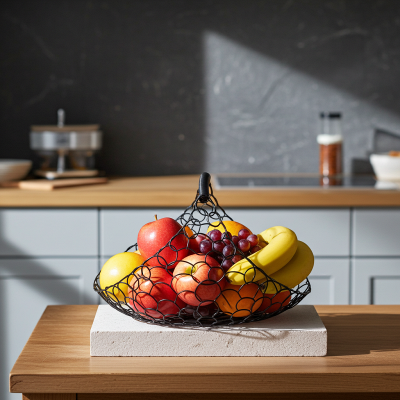 Оптимизирано Съхранение: Отвореният мрежест дизайн позволява на въздуха да циркулира свободно, запазвайки плодовете и зеленчуците свежи за по-дълго време.