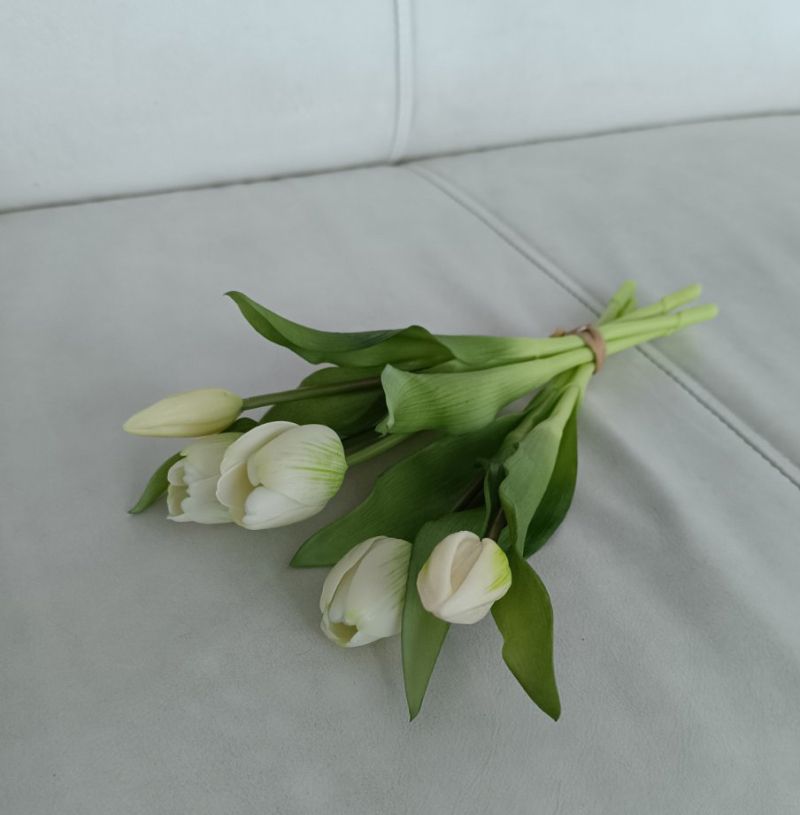 Силиконов букет от бели лалета Morello – Real Touch технология, 5 стръка