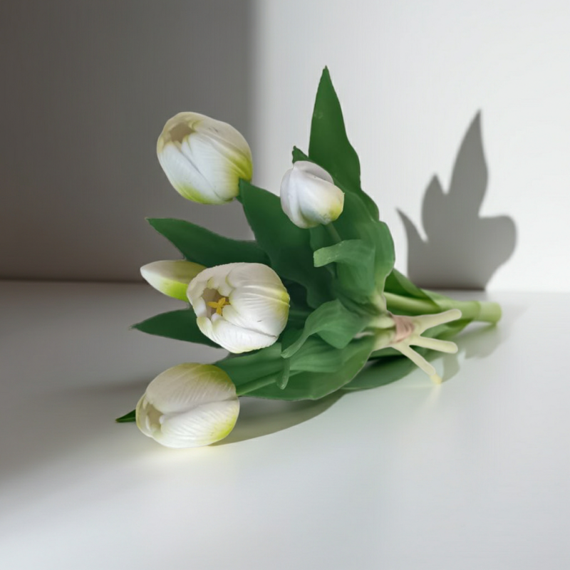 Внесете нотка на изискан минимализъм и пролетна нежност в интериора си с ексклузивния букет от бели лалета на Morello. Създаден с внимание към всеки детайл, този букет от 5 стръка пресъздава съвършенството на природата, като предлага не само визуален реализъм, но и неповторимо реалистично усещане при допир.