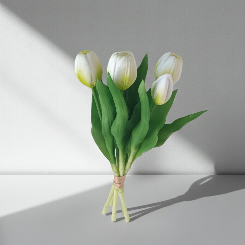 Букет от 5 бели лалета Morello – нежно усещане и вечна свежест, 31 см