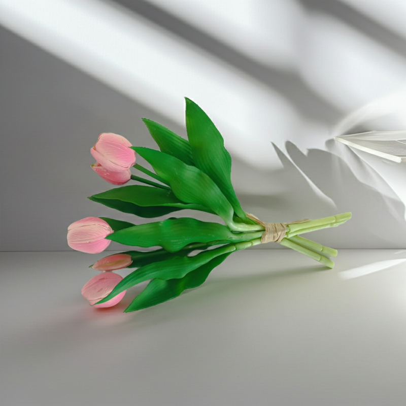 Този внимателно подбран сет от 5 стръка е идеалното допълнение към всеки съвременен интериор. Създаден с мисъл за детайла, букетът пренася нежността на истинското цвете във вашия дом, без да изисква ежедневни грижи. Специалната Real Touch технология гарантира, че всяко венчелистче е не само визуално перфектно, но и меко на допир, осигурявайки усещане за автентичност.