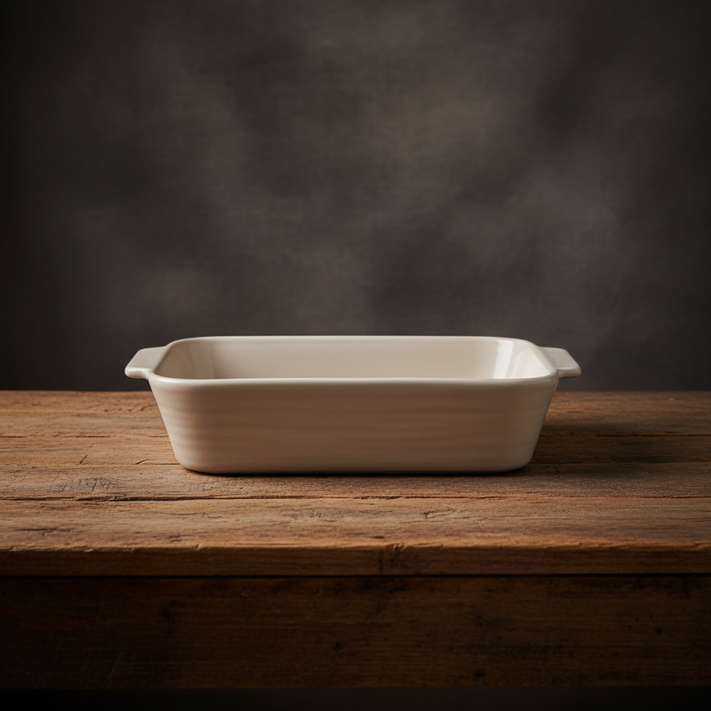 Класика и светлина във вашата кухня. Тази правоъгълна тава в нежен кремав цвят е перфектна за приготвяне на сочни лазани или празнични печива. Светлият нюанс подчертава естествените цветове на продуктите и внася аристократичен уют на трапезата.