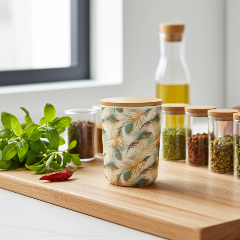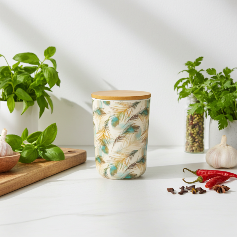 Бамбуковите фибри са изключително здрави и устойчиви на удари. За разлика от стъклените или керамичните буркани, този модел няма да се счупи при случайно изпускане, което го прави идеален за динамична кухня.