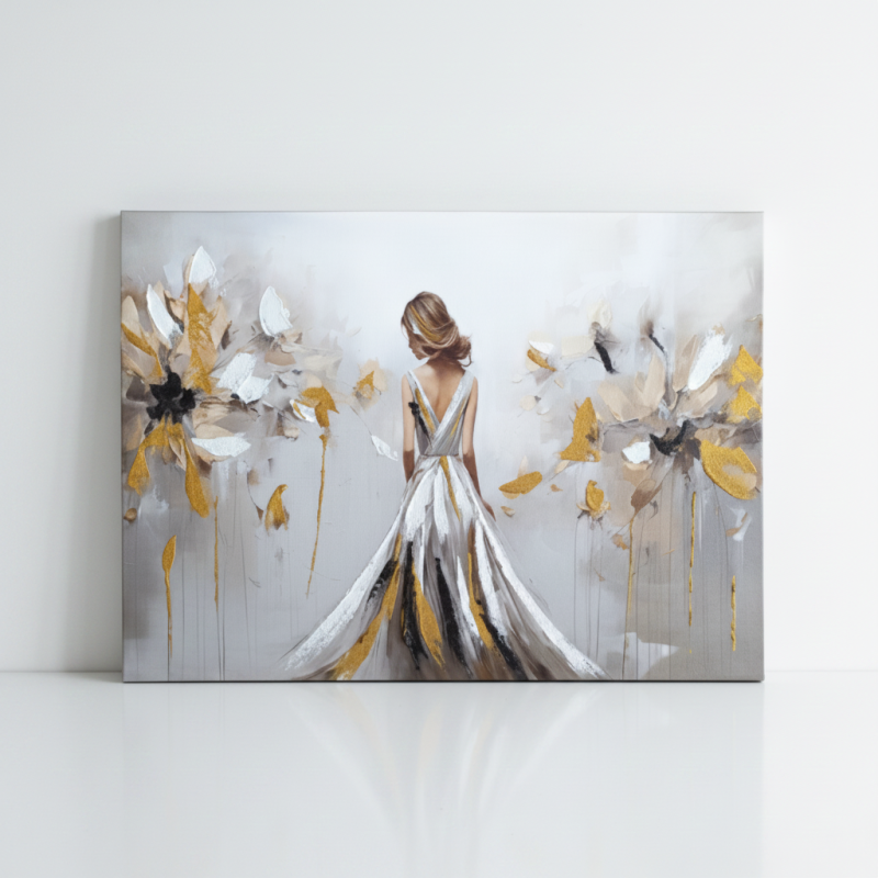 Картина върху канава "Златна елегантност" – Ръчно завършен шедьовър за Вашия дом