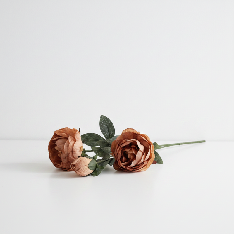 Артистичен букет от естествена коприна Morello – Медени божури, 3 стръка, 70 см