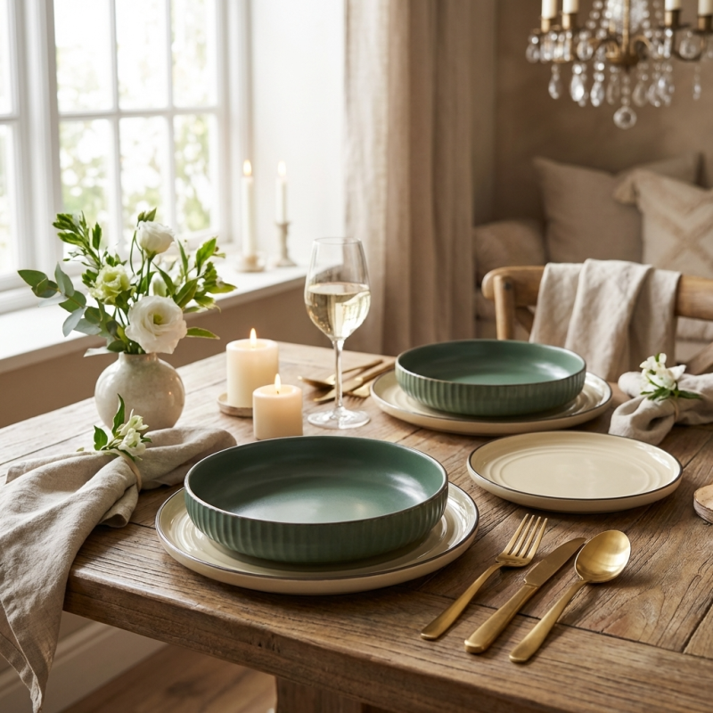 Полу матираното покритие придава модерен и луксозен акцент и създава усещане за спокойствие и естетика. Подходящ както за ежедневна употреба, така и за специални поводи, този сервиз добавя изтънченост към всяка семейна вечеря или празнична трапеза.